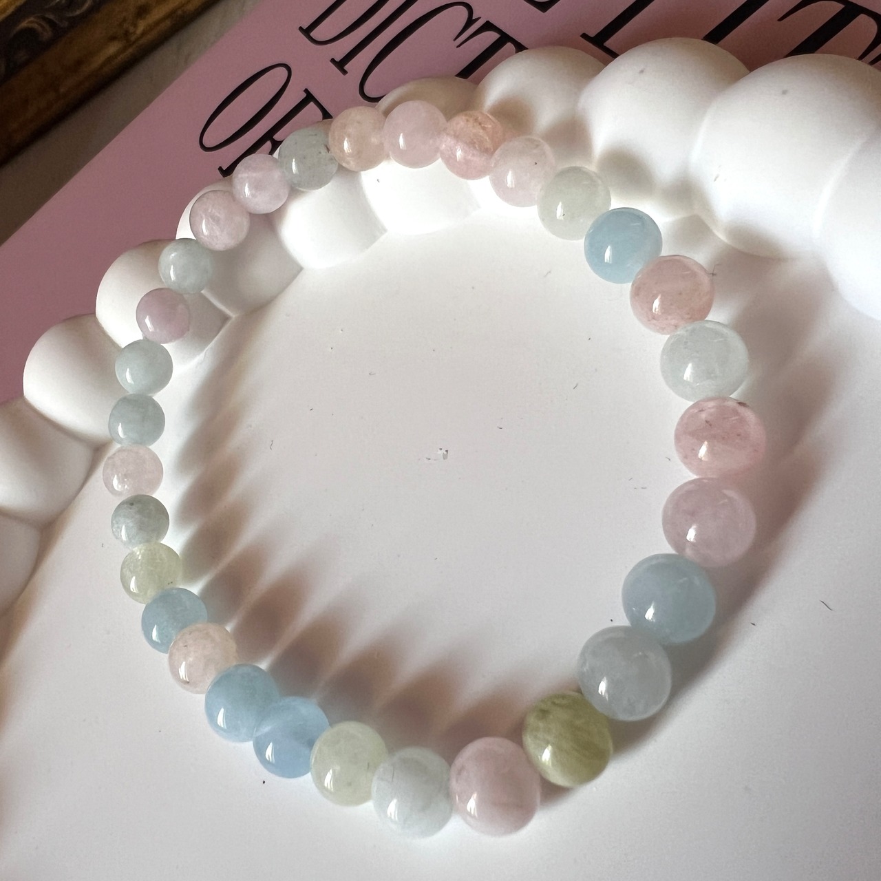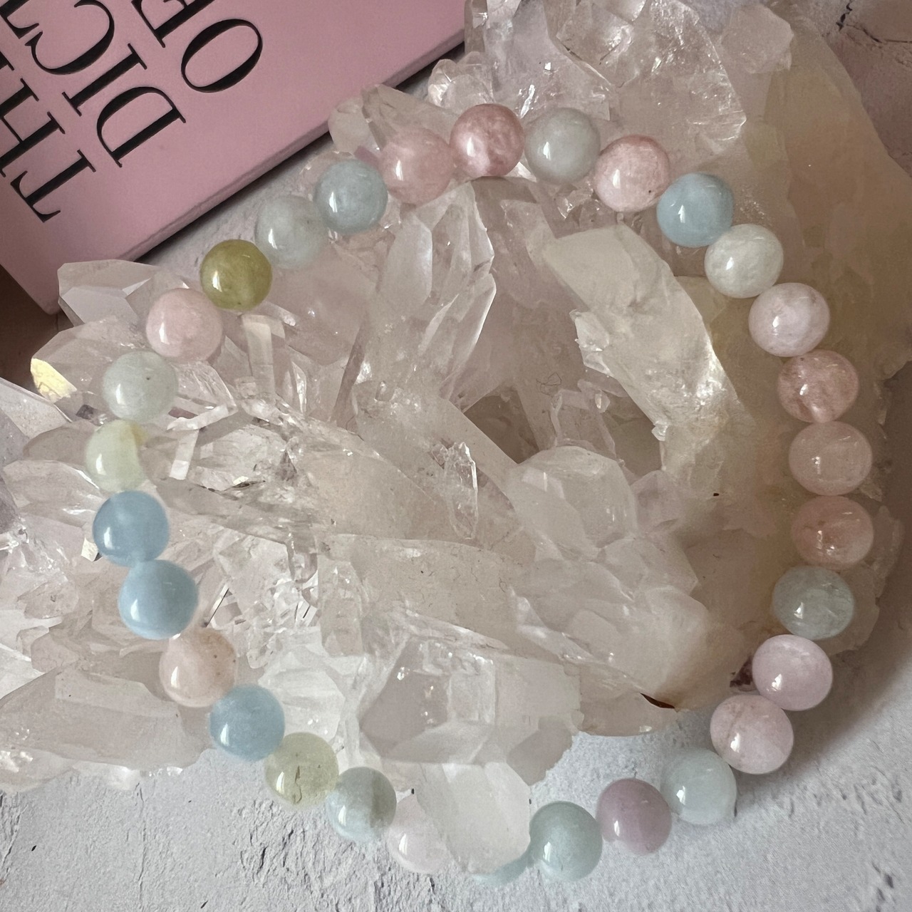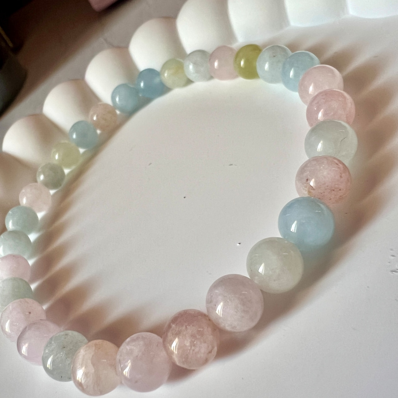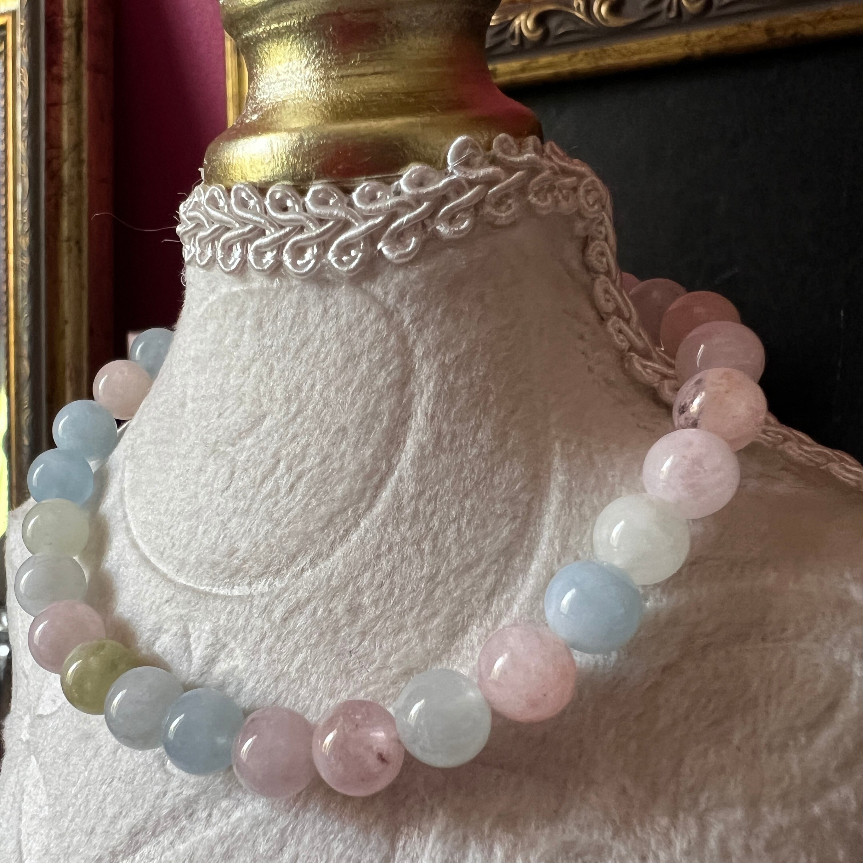 透明感のある、やわらかなパステルカラーが魅力のベリル系マルチカラーブレスレットです。