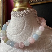 アクアマリン(水色)、モルガナイト(ピンク)、ヘリオドール(イエロー)、エメラルド(淡いグリーン)
