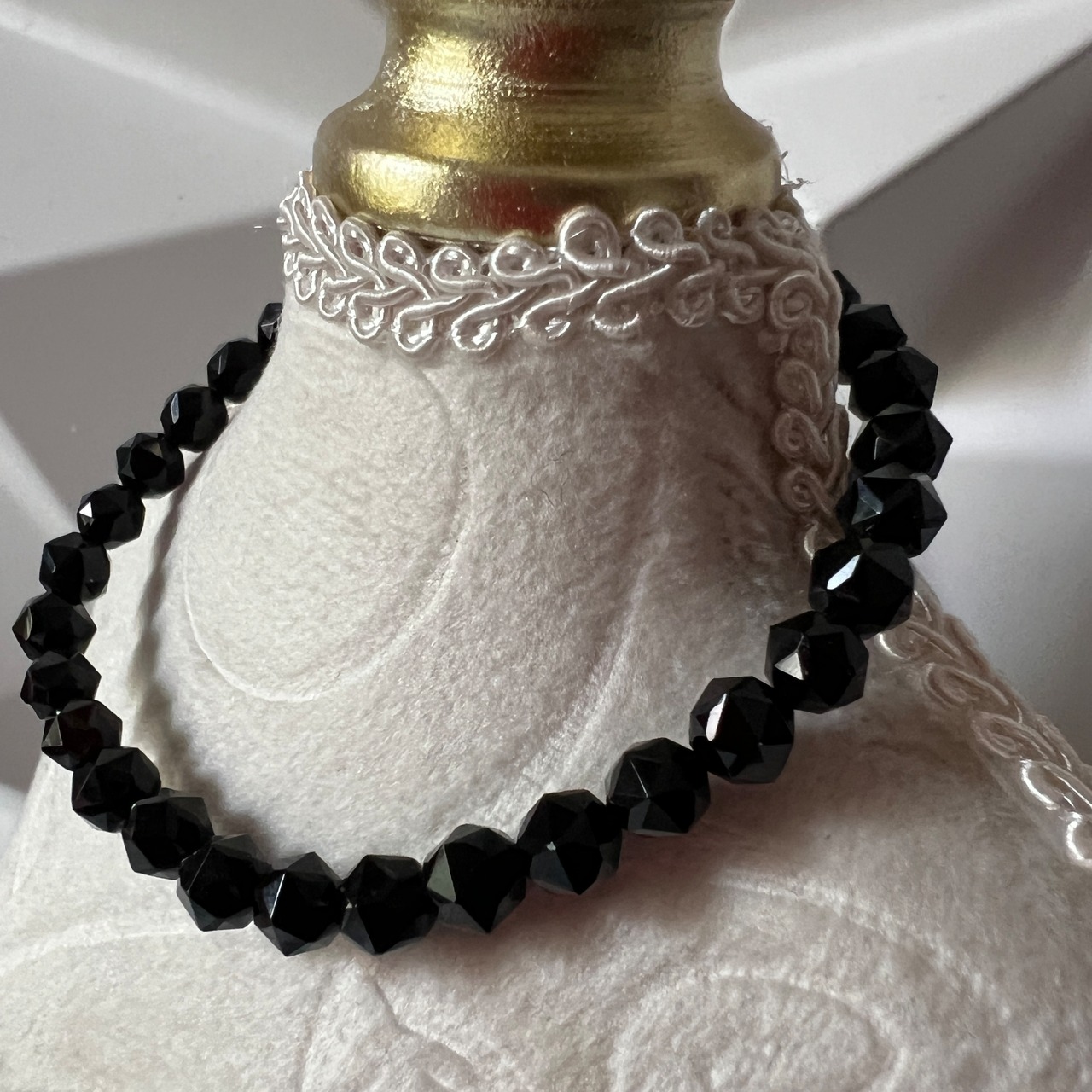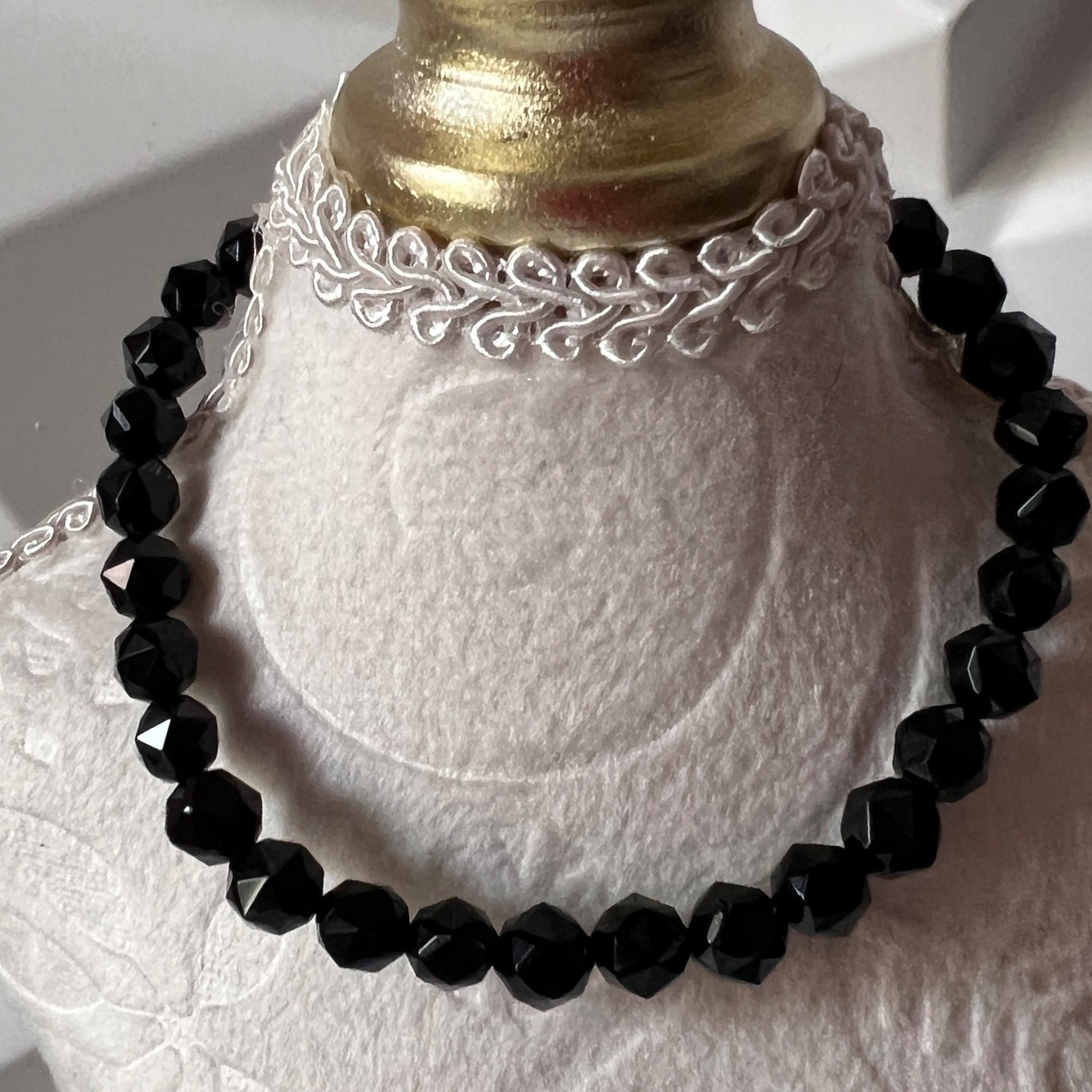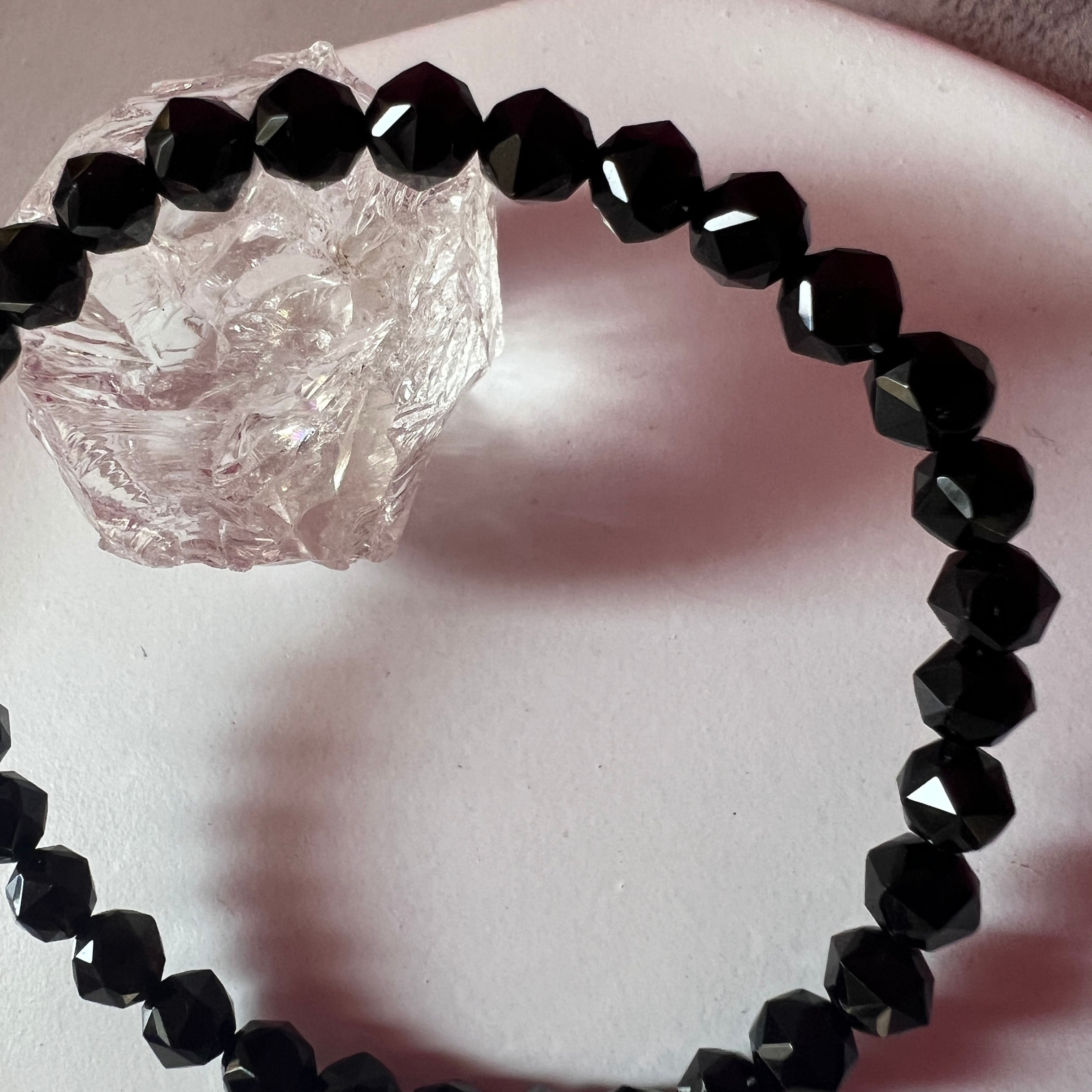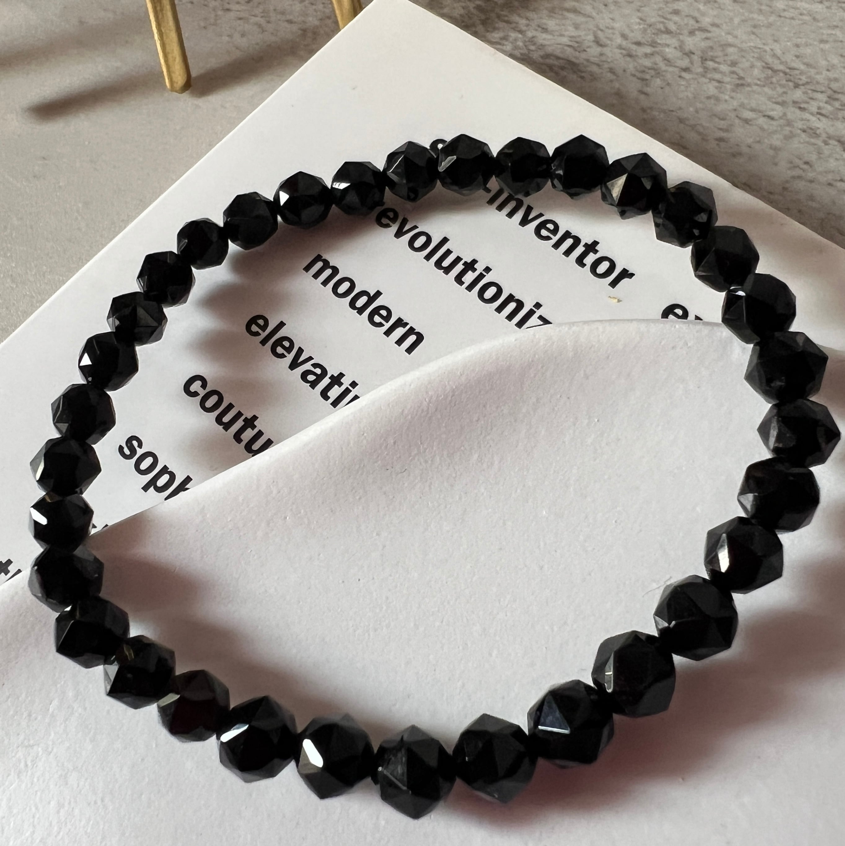さらに多面体カット(スターカット)によって、光を反射しながらも漆黒の奥深さを際立たせ、ファッション性と神聖さを兼ね備えています。
