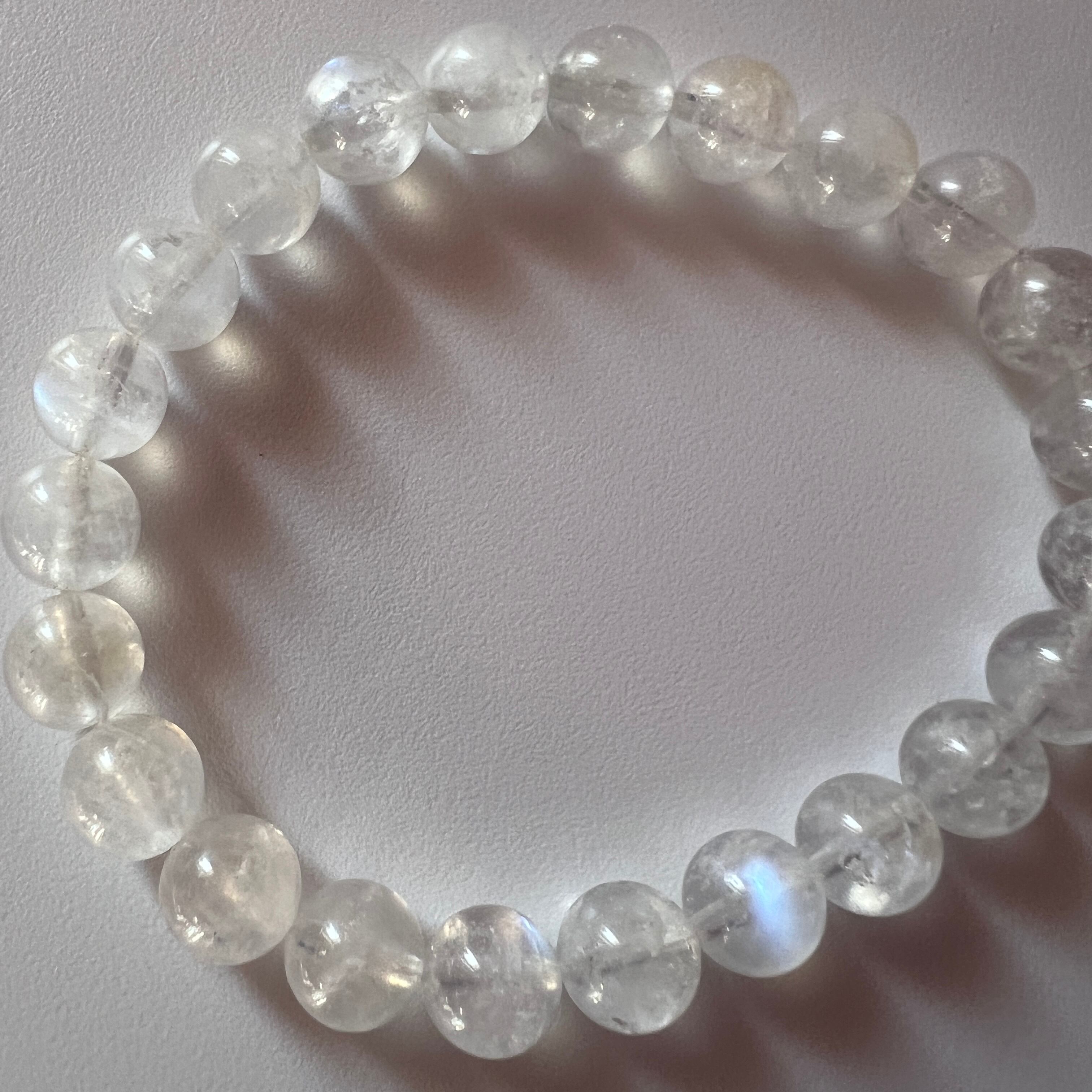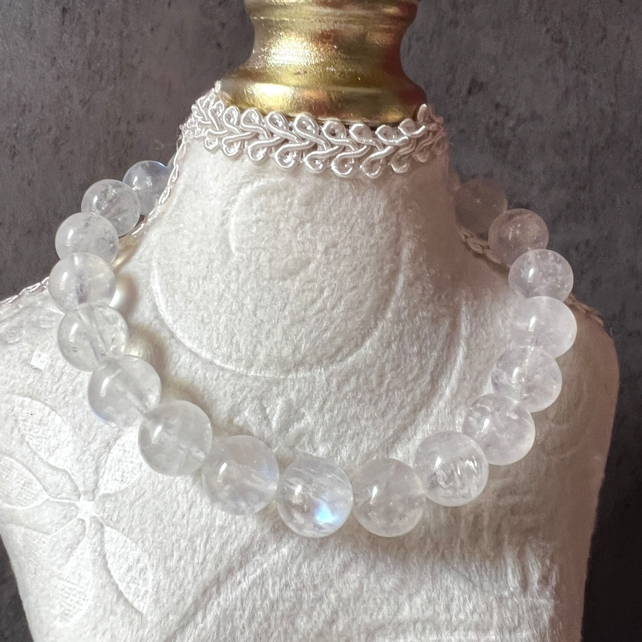 ブルーシラームーンストーンNo_1 約8.5mm珠 内径約16.5cm