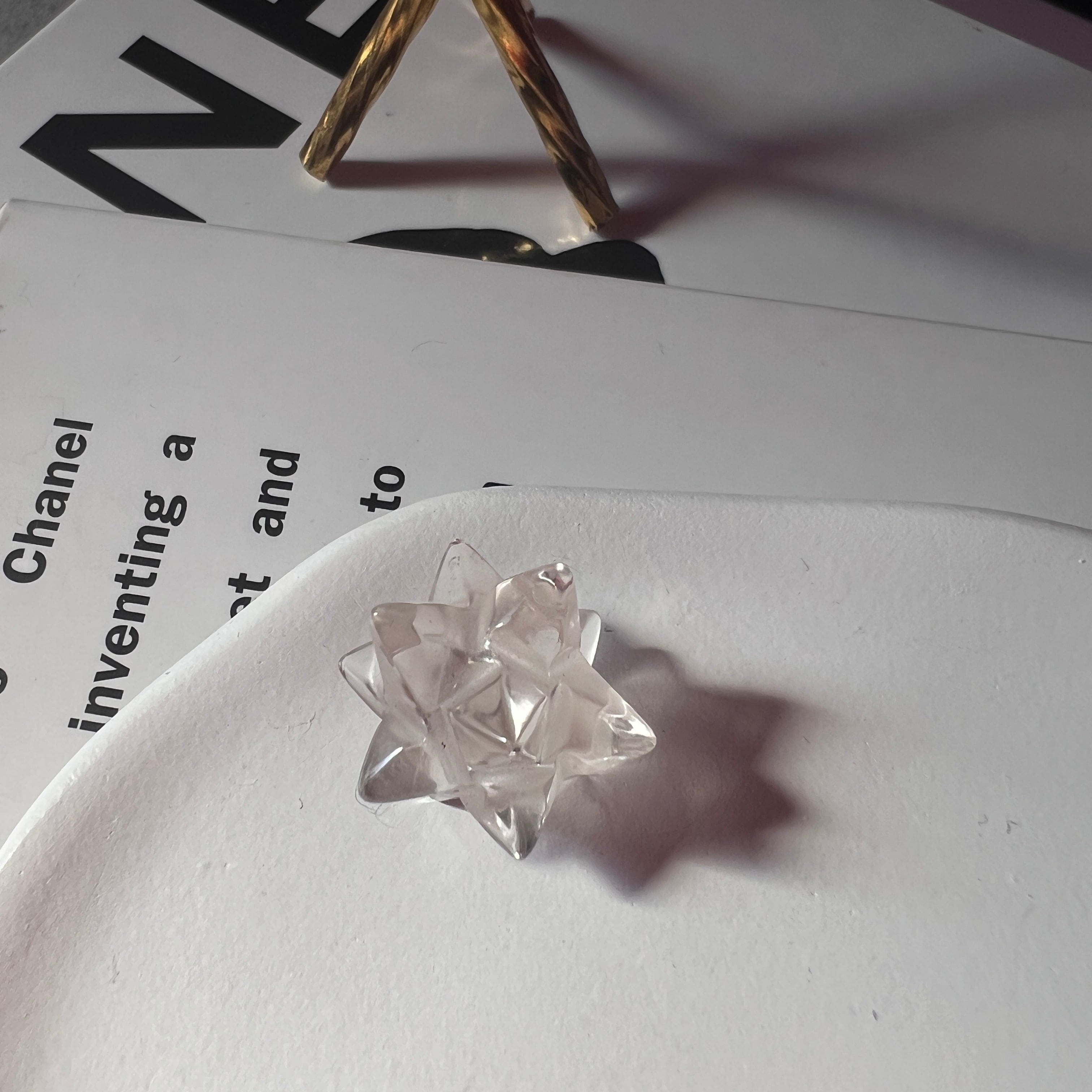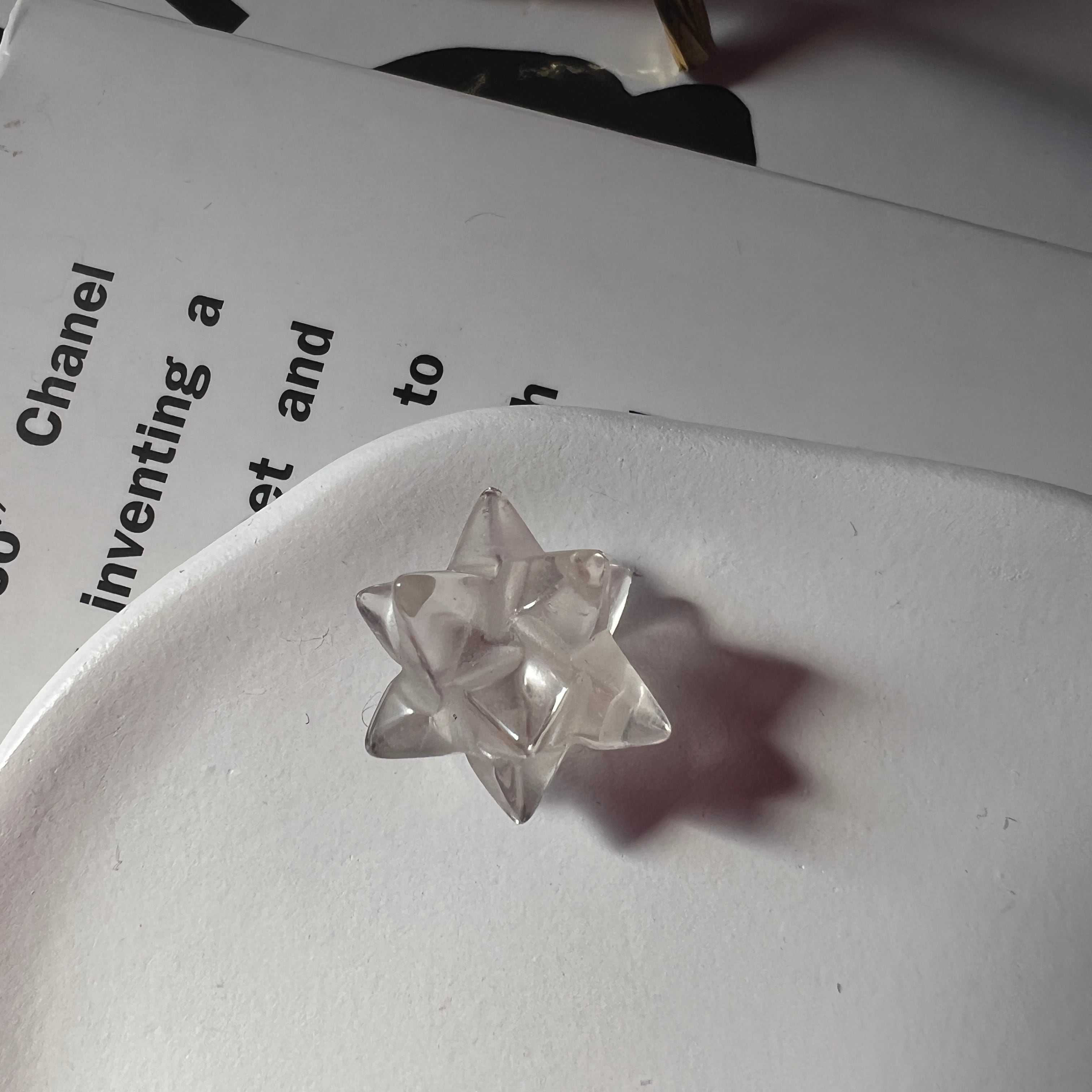 ブラジル・バイーア州アレグレ産の希少レムリアンシードクリスタルを、贅沢にアステロイド(小星型12面体)へと彫刻した特別仕様です。