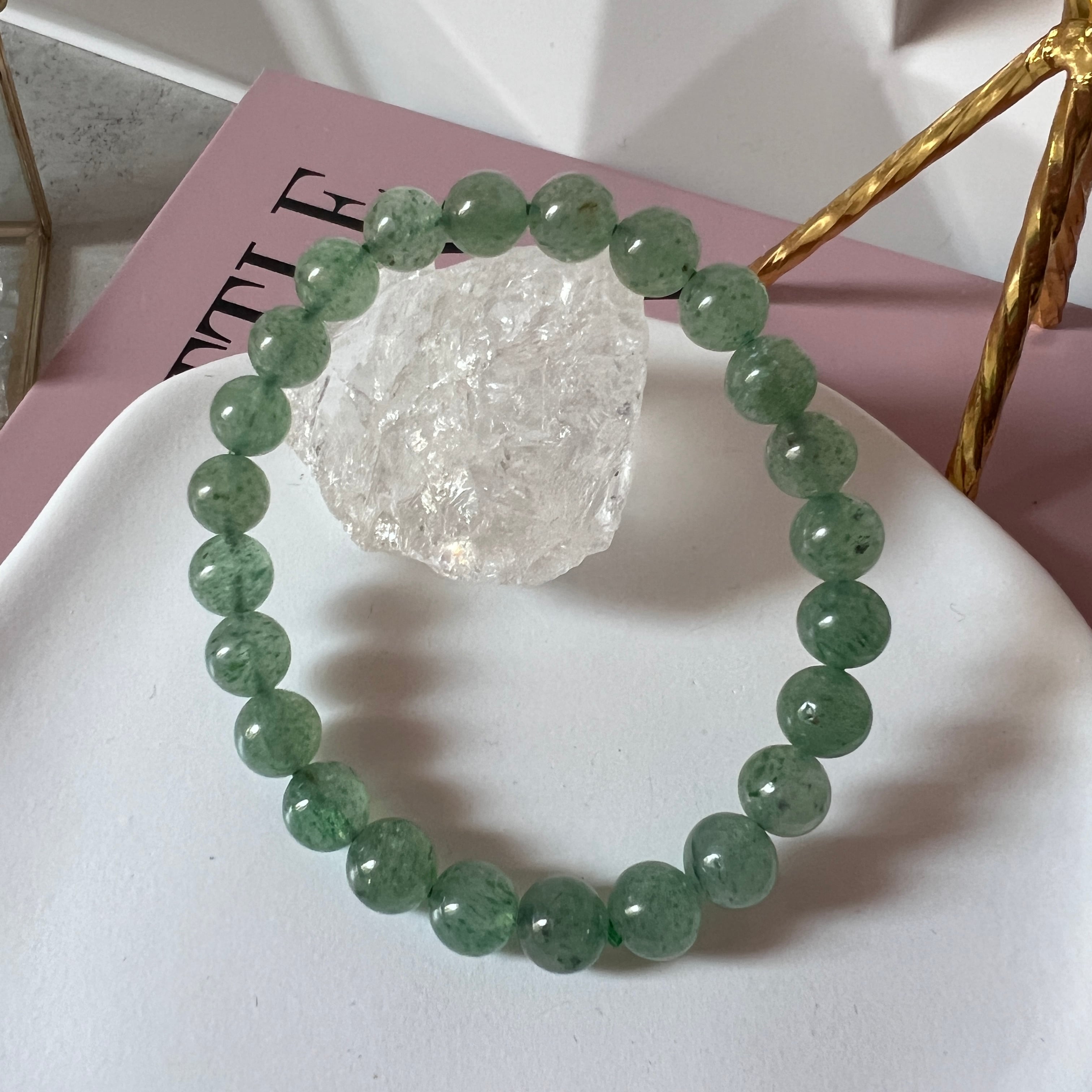 透明感が高く、光の透過が美しい薄いグリーンアベンチュリンのブレスレットです。